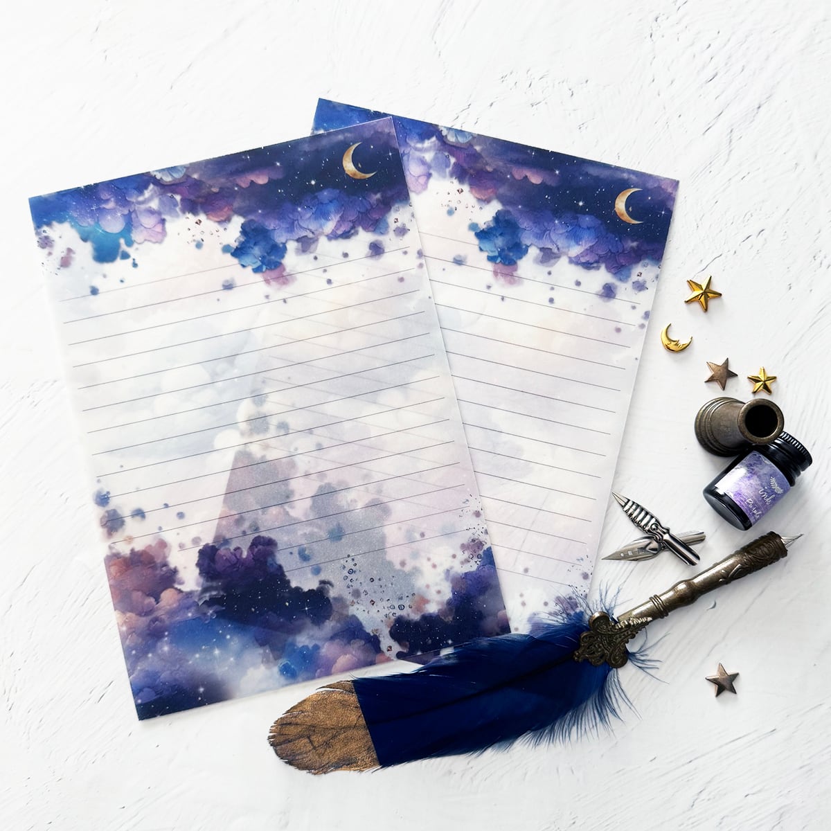 【レターセット・便箋】三日月と星空のしずく レターセット(上質紙・トレペver.)