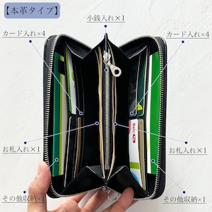 小銭入れ×1、カード入れ×12、お札入れ×4、通帳サイズが入る収納×2