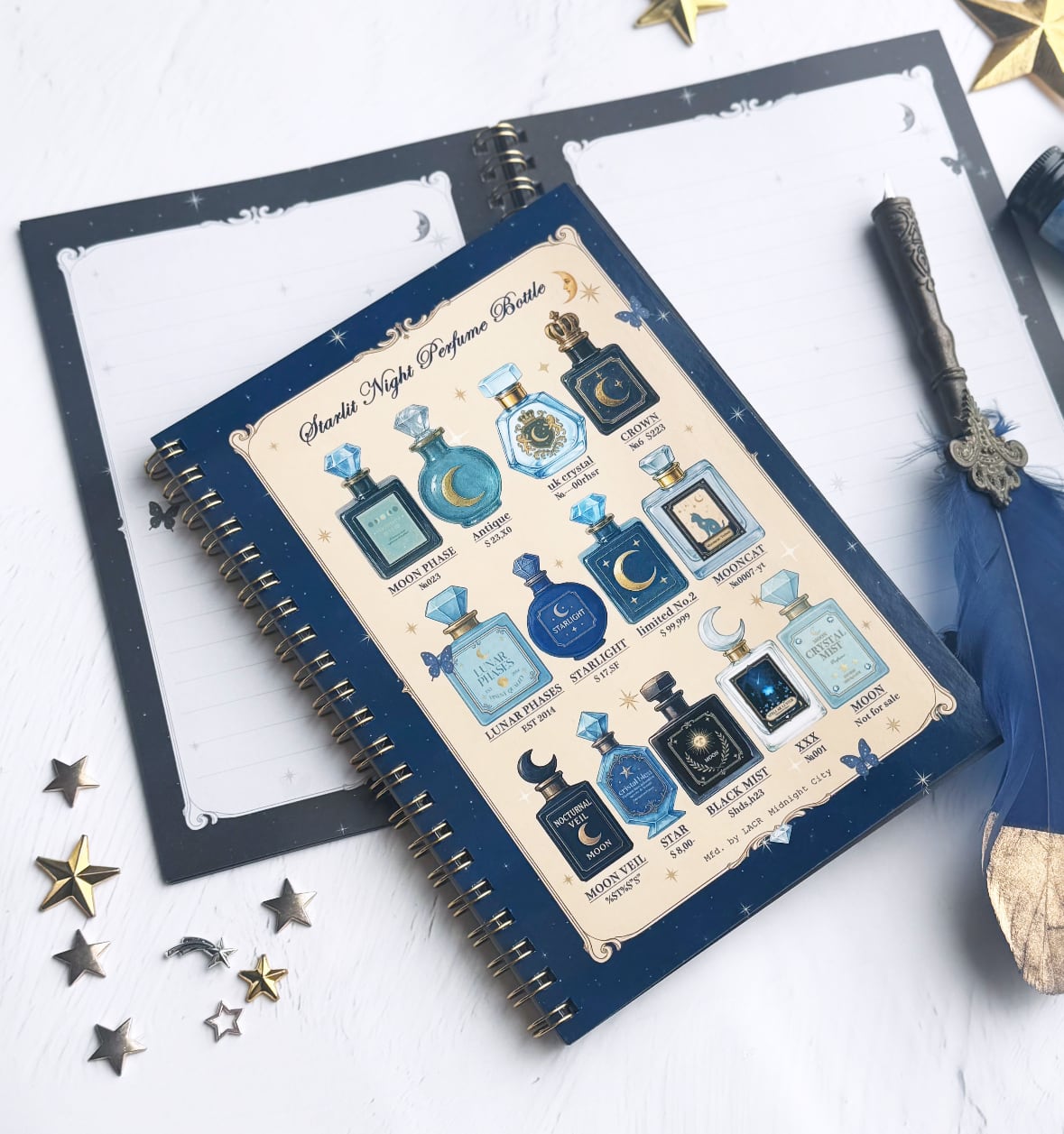 【ノート・手帳】星空香水瓶 コラージュ瓶柄 リング綴じノート B6サイズ|手帳・日記帳・スケジュール帳