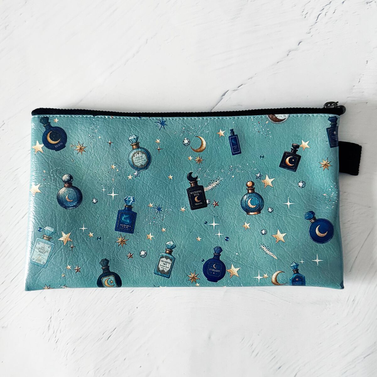 【ポーチ・小物入れ】星空香水瓶 アンティーク瓶総柄 フラットポーチ | 平ポーチ ペンケース