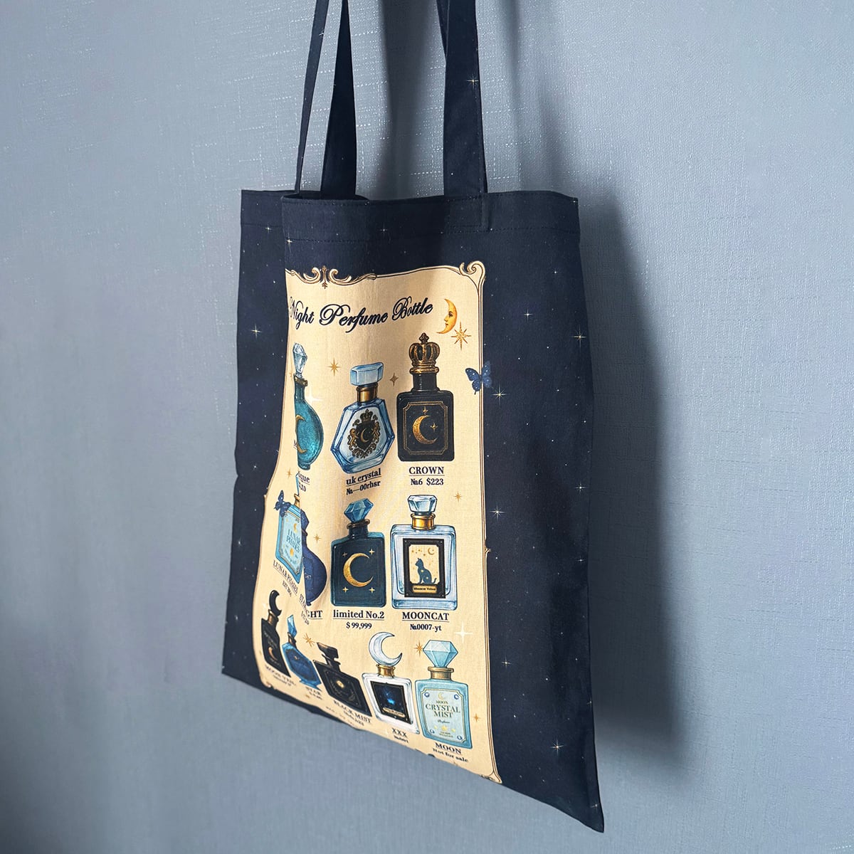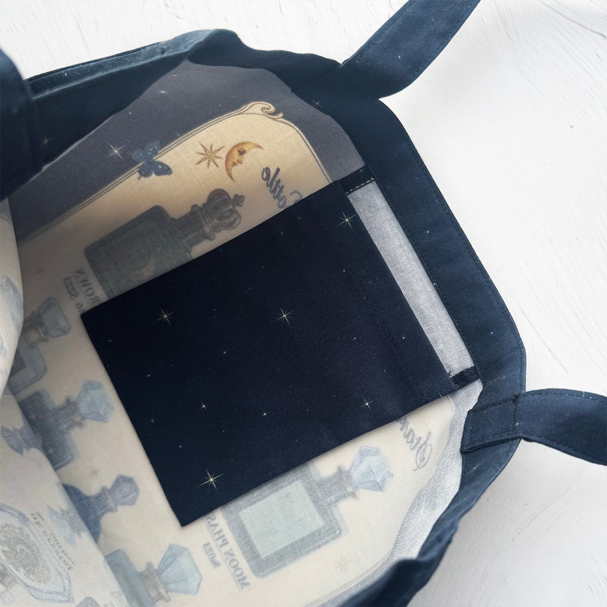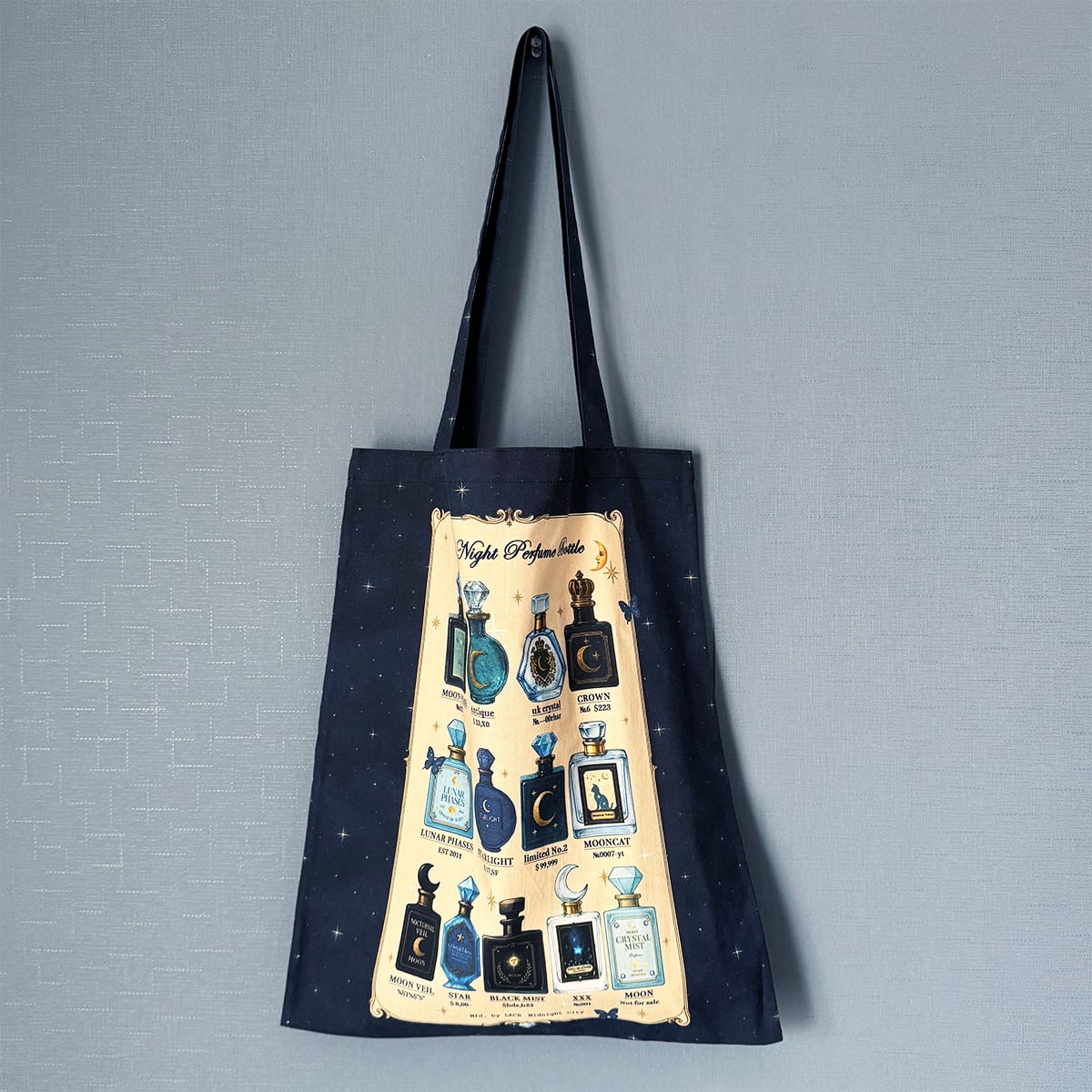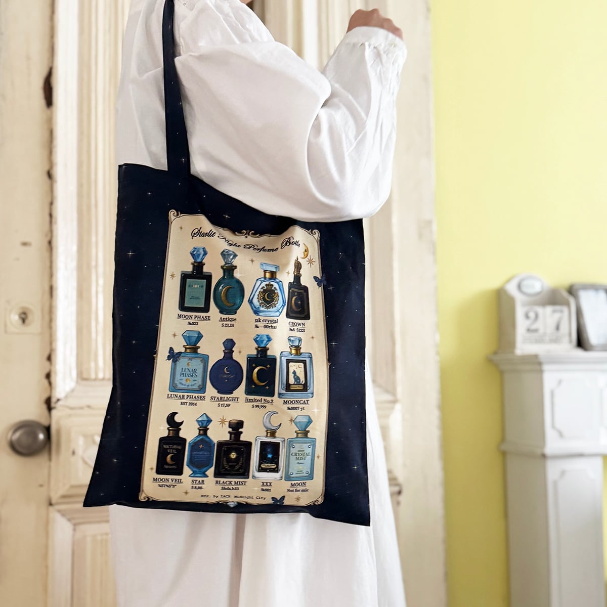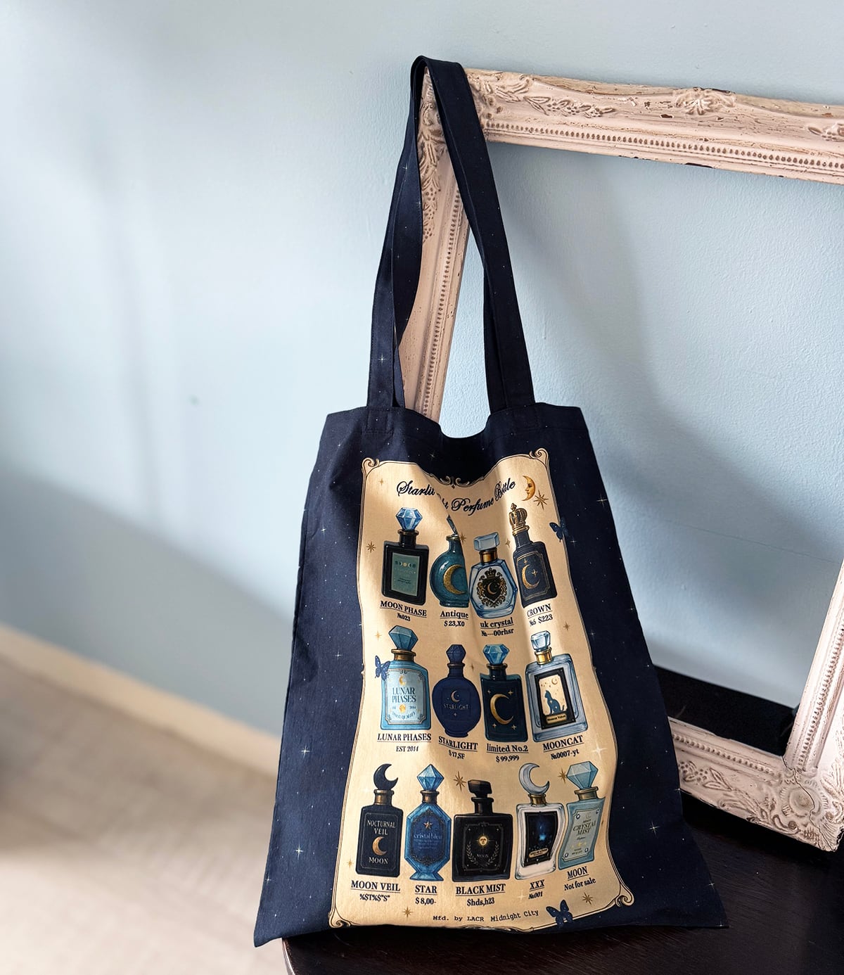 星空香水瓶 コラージュ瓶柄 トートバッグ