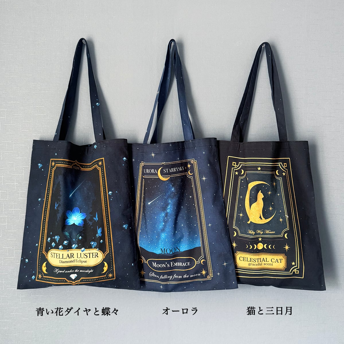 【全3種】星空香水瓶 ラベル柄 トートバッグ