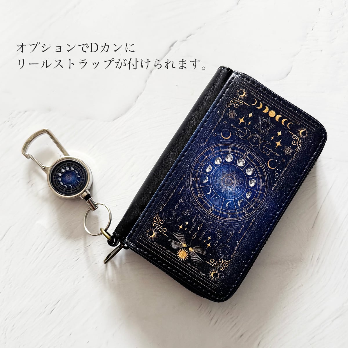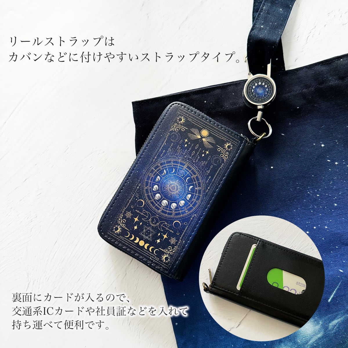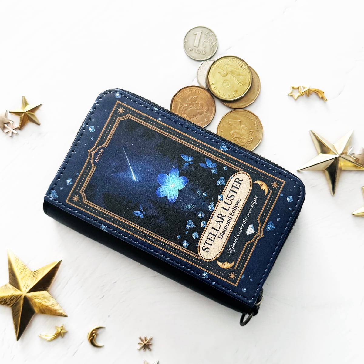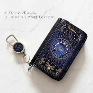 星空香水瓶 青い花とダイヤと蝶々 ラベル柄 ミニ財布・コンパクト財布 リールストラップ付き