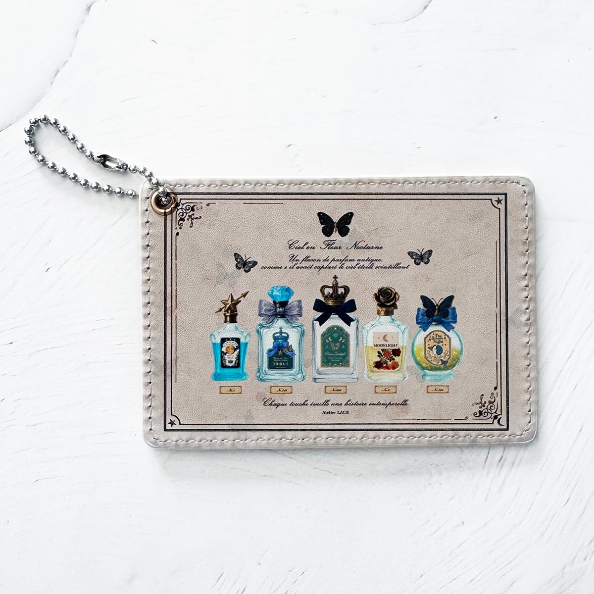 アンティークコラージュ香水瓶 リールストラップ付き パスケース(小)