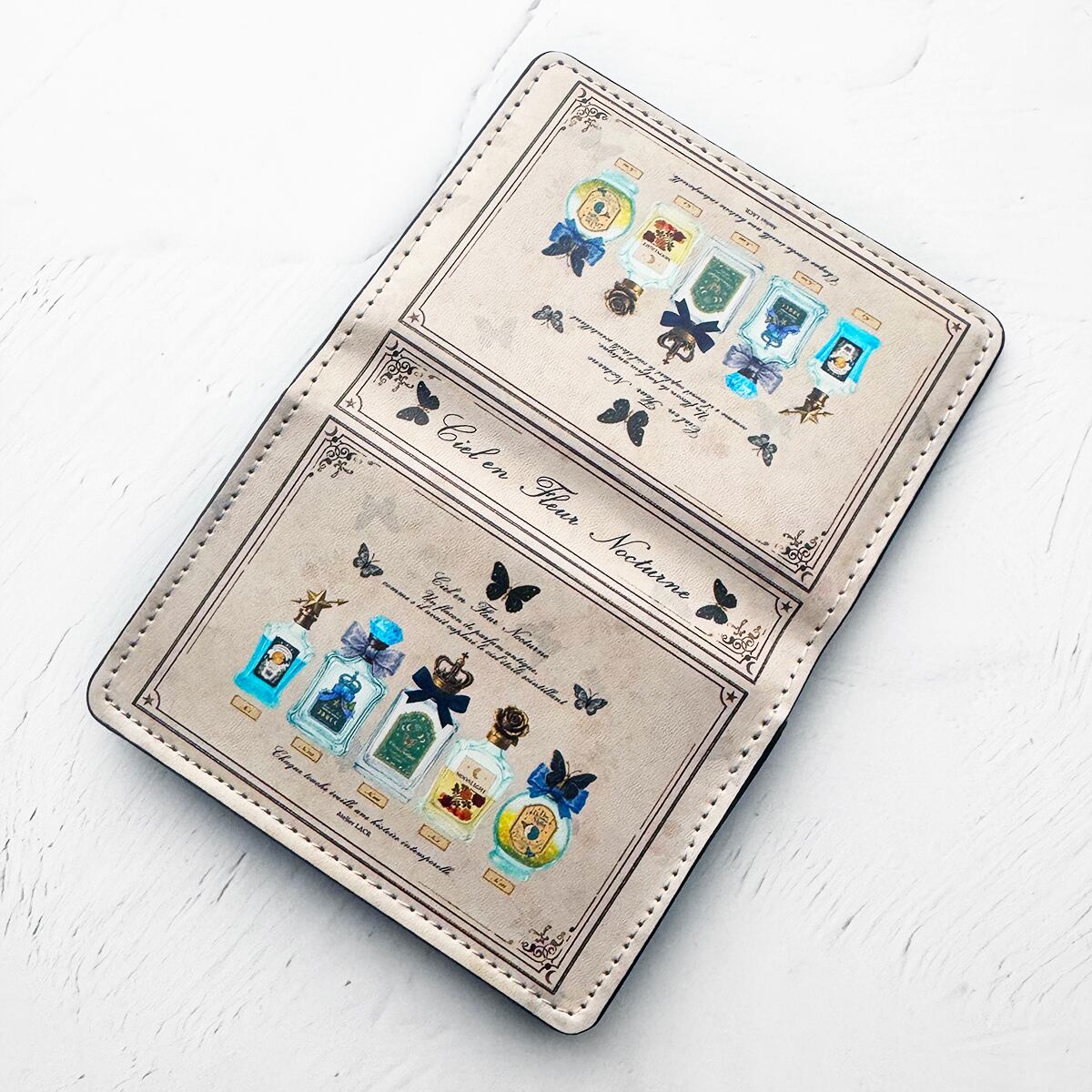 小さな本のような名刺入れ アンティークコラージュ香水瓶