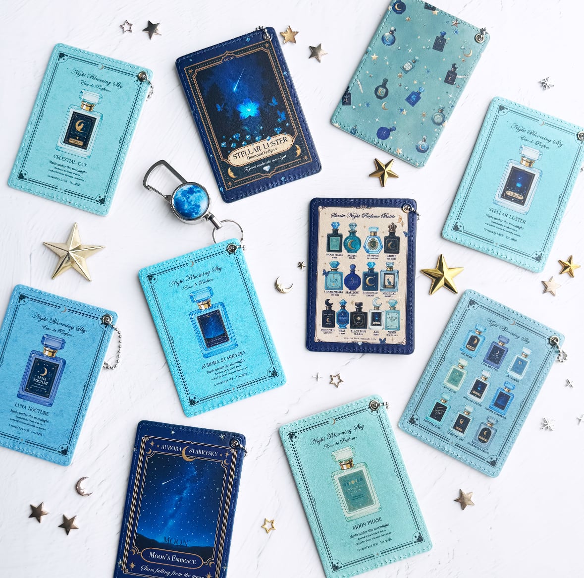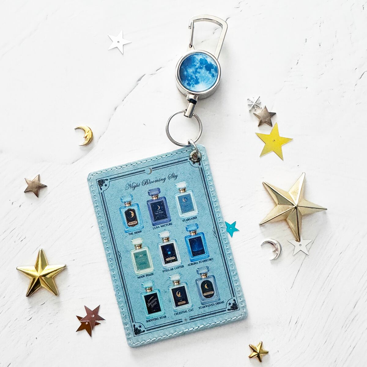 【SALE】パスケース(小)星空香水瓶 リールストラップ付き | 定期入れ IDカードケース