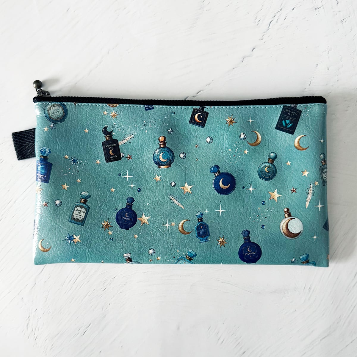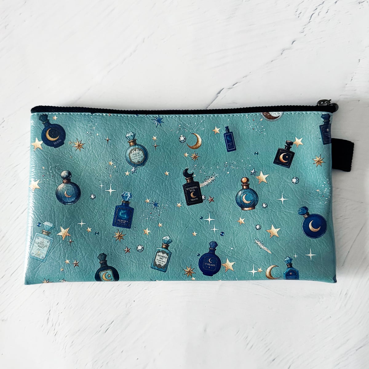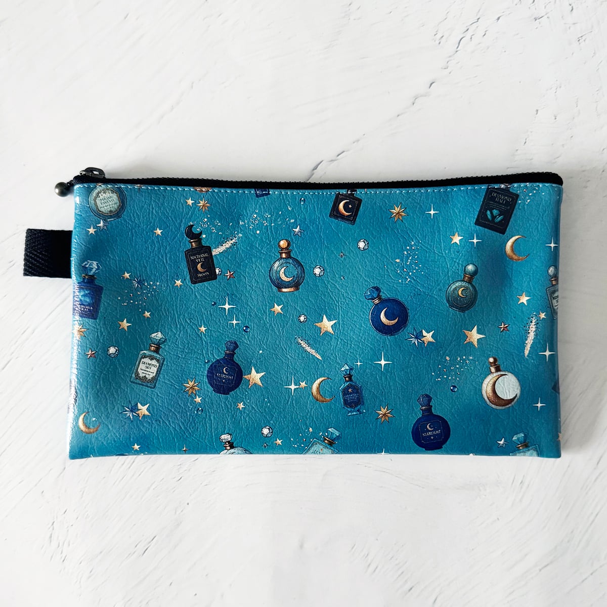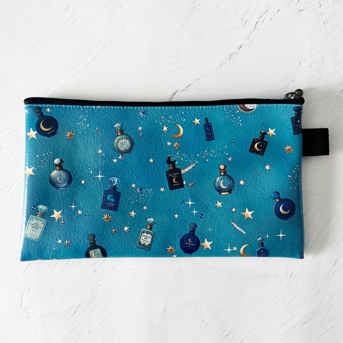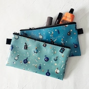 【SALE】【ポーチ・小物入れ】星空香水瓶 アンティーク瓶総柄 フラットポーチ | 平ポーチ ペンケース