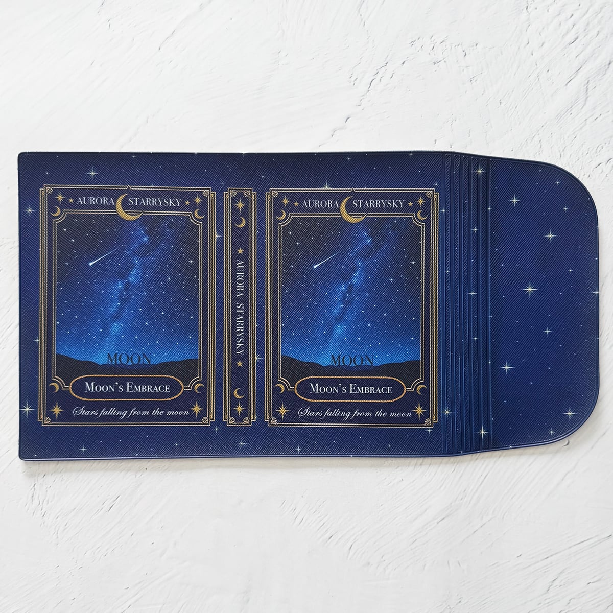 星や月、繊細な装飾文字など、小さな面積に詰め込まれたロマンティックな世界を引き立てるよう、細部まで丁寧に描き込みました。