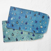 ひとつひとつの枠の中に広がる空想の世界を、じっくり眺めたくなるような、繊細で印象的な柄です。