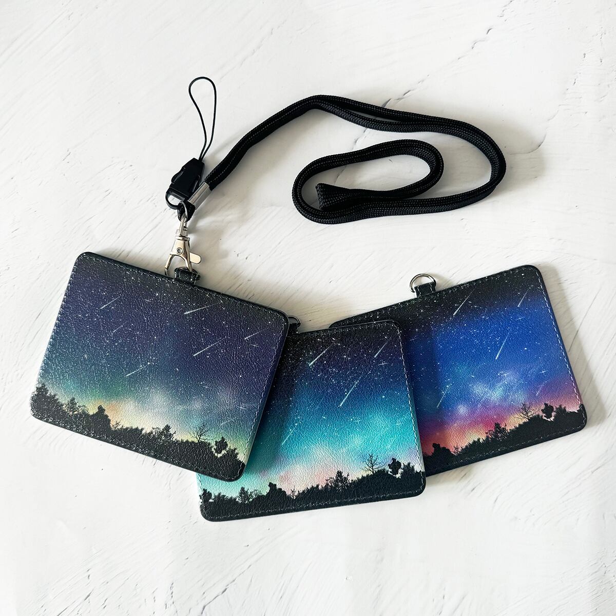 リールストラップ付き 全4種 夜空に降り注ぐ流星柄 パスケース(大)