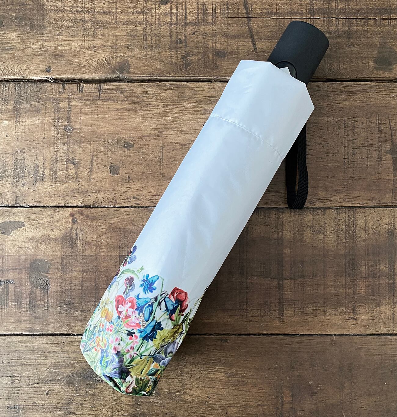 花の楽園 ボタニカル柄(ホワイト) 晴雨兼用 折りたたみ傘・日傘(外側プリント)