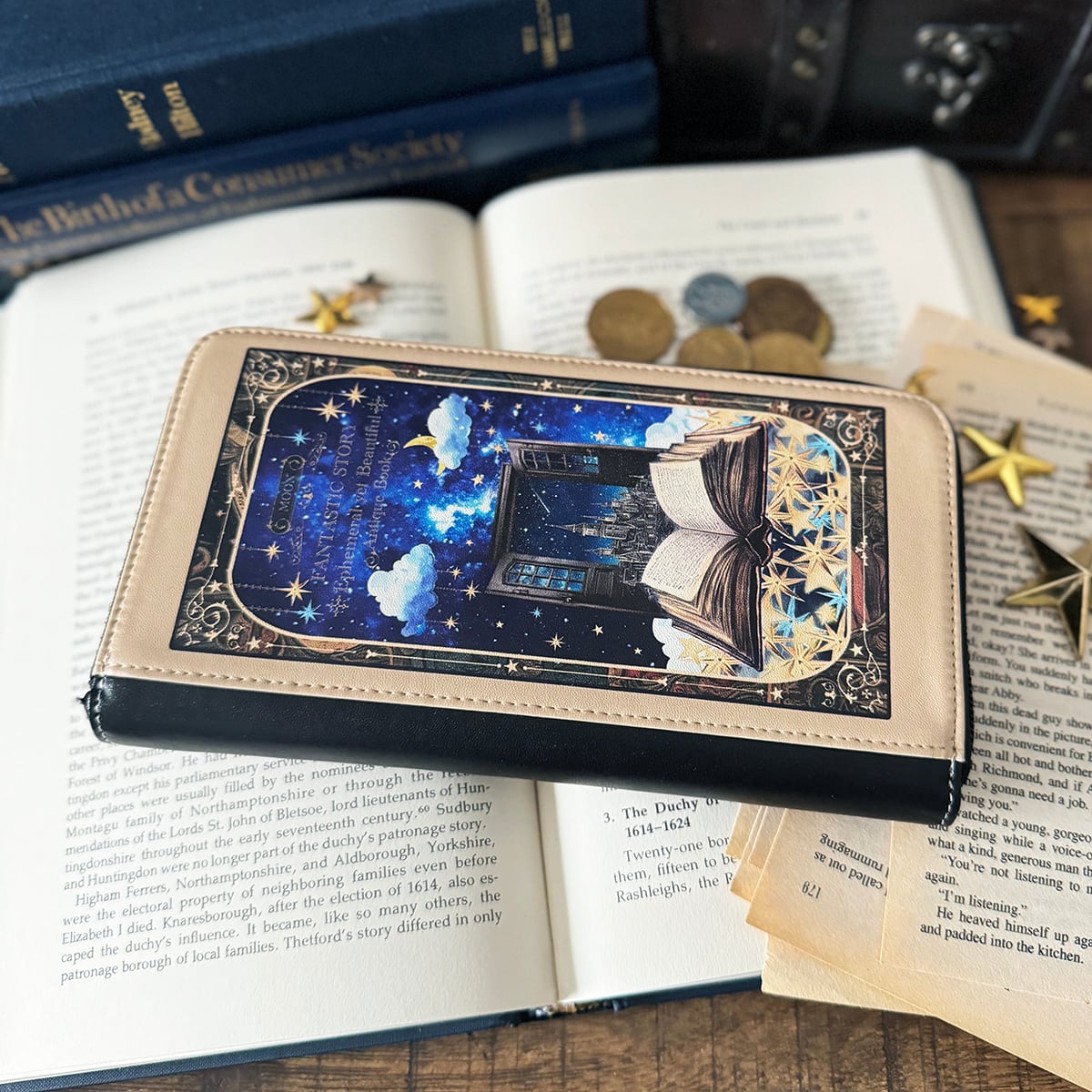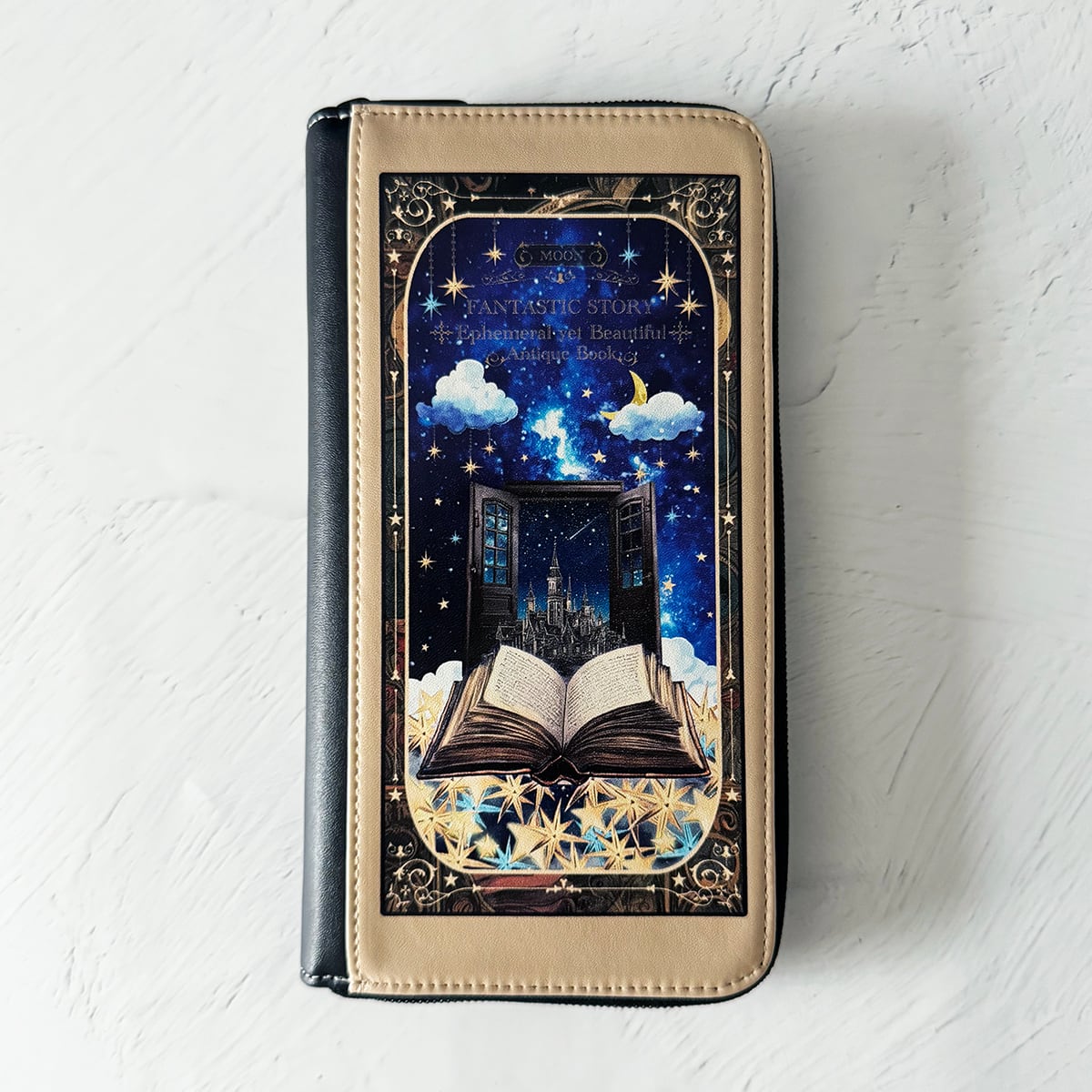美しい星空の世界と、どこか古びた洋書のような雰囲気がマッチしたデザイン。