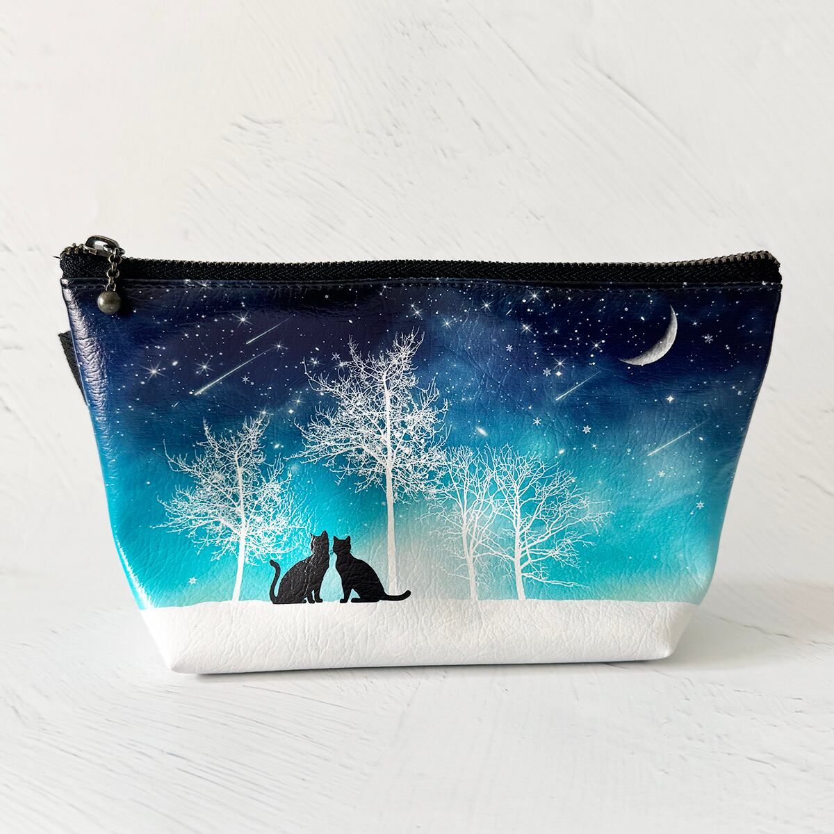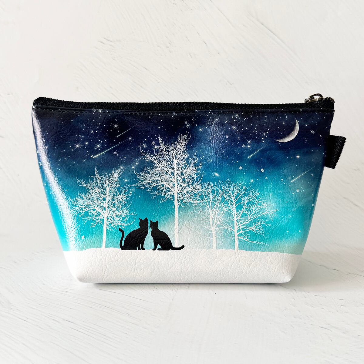 【ポーチ・小物入れ】冬の星空・寄り添い合う猫 ポーチ | 小物入れ ペンケース